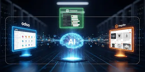 Intégrer Odoo, Chatwoot et Magento : Une stack unifiée pilotée par l’IA pour l’industrie